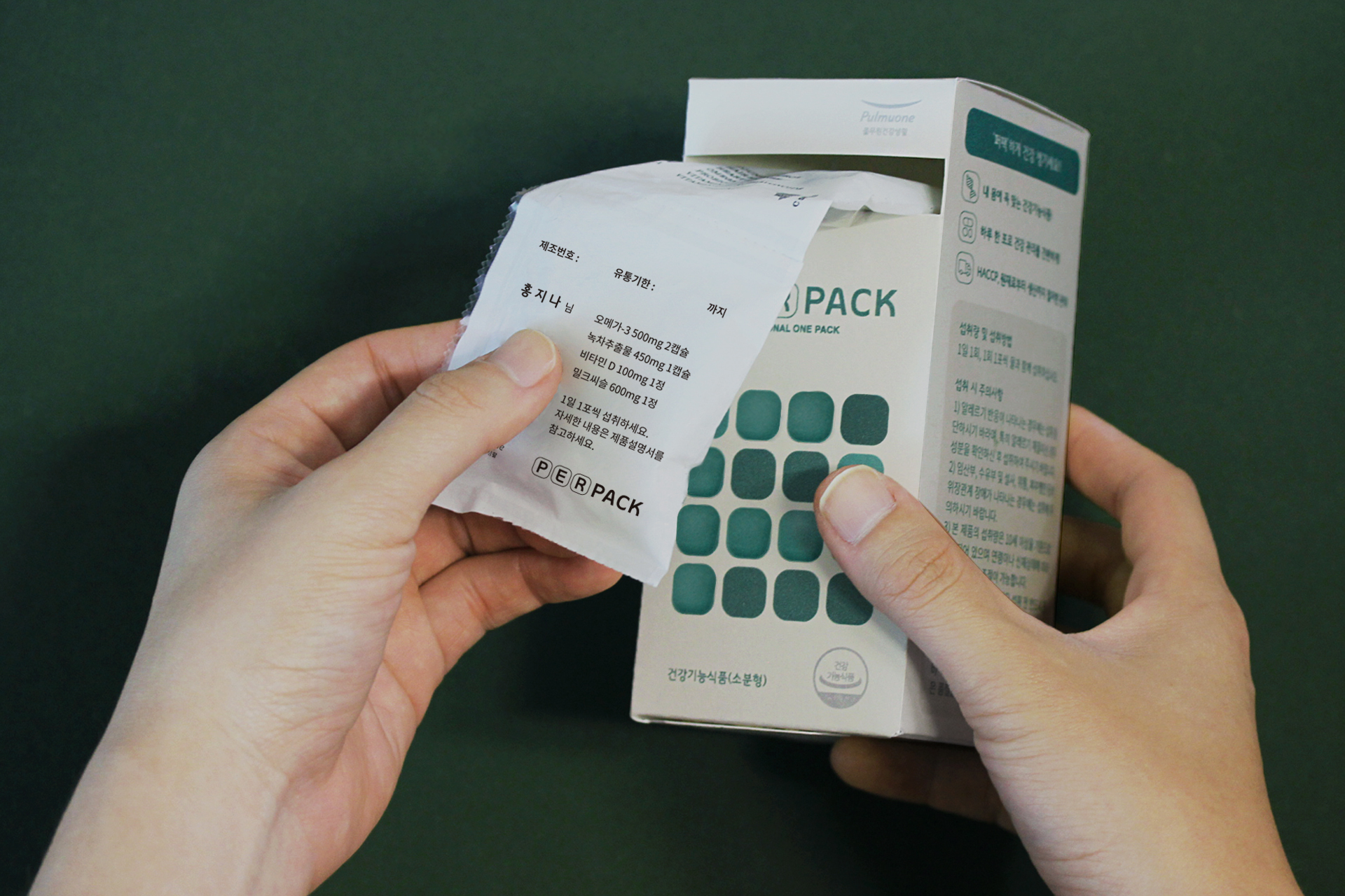 풀무원건강생활의 새 브랜드 <퍼팩>은 개인의 건강상태, 생활습관, 생활 패턴 및 유전자 검사 결과를 토대로 보충이 필요한 영양소를 추천하는 개인 맞춤형 건강기능식품 브랜드입니다. <퍼팩>은 ‘퍼스널 원팩(Personal One Pack)’의 약자로 ‘개인에게 최적화된 건강기능식품 하루 1팩’ 을 제안한다는 의미를 담고 있습니다.